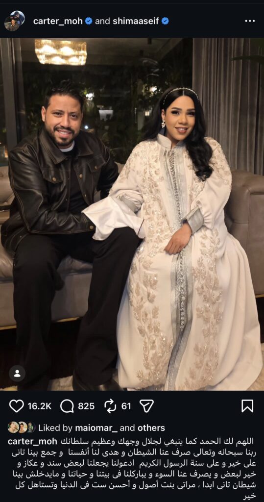 عودة شيماء سيف وزوجها محمد كارتر بعد انفصال 2025.. رسالة مؤثرة تعلن الصلح